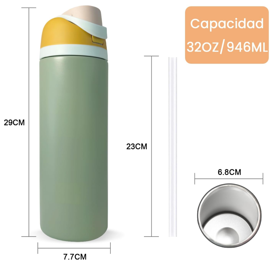 Esta botella de agua puede conservarse hasta 32 oz y poder llevarla dentro de un bolso, mochila o lonchera. permite llevar a mano con facilidad al tener agarradera.